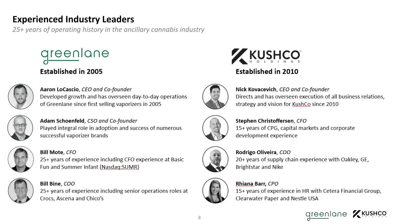 Experienced Industry Leaders 8 25+ years of operating history in the ancillary cannabis industry